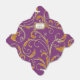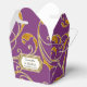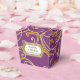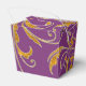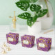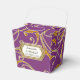 NOTE: This is a flat printed image, there are no jewels, raised layers or gold metallic elements. COLOR PALETTE: violet purple, soft creamy white with faux gold metallic glitter look DESIGN COLLECTION: Matching formal dinner reception, bridal shower or rehearsal dinner favour boxes for easy decor enhancement. Inspired by Old Hollywood and her heyday glam era, this wedding invitation set is perfect for elegant, sophisticated, modern wedding celebrations. A classic, beautiful swirling leaf damask style pattern has been graphically designed to look like a silver edged gold glittery embroidered lace design with a golden buckle that has a diamond border over faux glitter. A contemporary typography layout for your invite wording and information updates this vintage retro design. A gorgeous, unique and pretty design for the most discriminating bride.