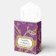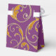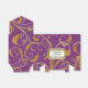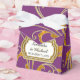 NOTE: This is a flat printed image, there are no jewels, raised layers or gold metallic elements. COLOR PALETTE: violet purple, soft creamy white with faux gold metallic glitter look DESIGN COLLECTION: Matching formal dinner reception, bridal shower or rehearsal dinner favour boxes for easy decor enhancement. Inspired by Old Hollywood and her heyday glam era, this wedding invitation set is perfect for elegant, sophisticated, modern wedding celebrations. A classic, beautiful swirling leaf damask style pattern has been graphically designed to look like a silver edged gold glittery embroidered lace design with a golden buckle that has a diamond border over faux glitter. A contemporary typography layout for your invite wording and information updates this vintage retro design. A gorgeous, unique and pretty design for the most discriminating bride.