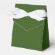 Favour Box Tent Style Personalizable Shown with a rich forest green colour background and white bow.