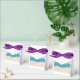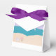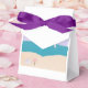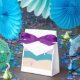 This favour or gift box is designed with my depiction of a beach scene with a chair and umbrella next to a turquoise ocean.