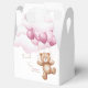 Favour Boxes for the baby shower decorated with an adorable teddy bear flying on balloons in the clouds.
