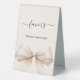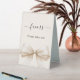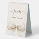 An ivory coloured background, decorated with a large bow. Text: Favours. Please take one!