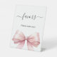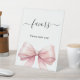 White elegant background, decorated with a large pink bow. Text: Favours. Please take one!