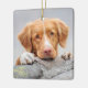 Personalise with photo, name and dates. COPYRIGHT © 2020 Judy Burrows, Black Dog Art - All Rights Reserved. Favourite Hello Hardest Goodbye Modern Pet Memorial Ceramic Ornament