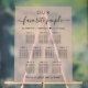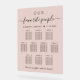 Chic blush pink wedding seating chart frosted acrylic sign for up to 10 tables featuring "our favourite people" in simple typography and an elegant script, your names and wedding date joined together by a heart and "We're so glad you're here" in modern serif typography.