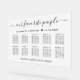 Chic wedding seating chart frosted acrylic sign for up to 10 tables featuring "our favourite people" in an elegant script, your names and wedding date joined together by a heart and "We're so glad you're here" in simple modern typography.