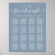 Stylish dusty blue wedding seating chart sign for up to 16 tables featuring "our favourite people" in simple modern white typography and a chic white script with swashes and your first names and wedding date joined together by a heart. The digital download option allows you to edit with last minute changes and print locally.