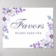 Favours take one. Purple flowers wedding sign