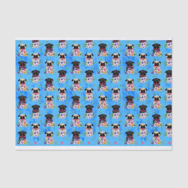 Fawn and Black Pugs In Spring Flowers Tissue Paper