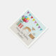 Destei's original cartoon illustration of a cute fawn and white coat color Italian Greyhound breed dog. The dog is placed in a colorful birthday setting. There is a birthday cake with some candles on it, colorful birthday balloons and a bunting banner as well as two present boxes. There is also a personalizable text area.