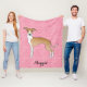 Fawn And White Italian Greyhound On Pink Hearts Fleece Blanket