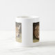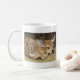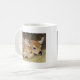A colour pencil portrait of a tiny spring fawn hiding adorns this mug!