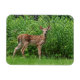 Fawn in front of a fence magnet