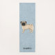 Fawn Pug Cute Cartoon Dog With Custom Name Blue Yoga Mat