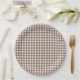 Introducing our bright and cheerful brown gingham paper plates, available in various sizes for any occasion! Perfect for outdoor picnics, indoor parties, or even everyday use, these plates feature a classic gingham design that will add a touch of fun to any setting. Made from high-quality paper material, these plates are sturdy and can hold a variety of foods. Plus, their disposable nature makes for easy cleanup after your event. Whether you're serving up burgers and hotdogs or a fancy charcuterie board, our brown gingham paper plates will brighten up your table and bring a smile to everyone's face.