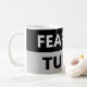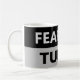 Bold and modern white, silver and black mug for a tuba player musician, featuring the words, FEAR THE TUBAS. Designed by Heard_. See more music designs in my Zazzle store, Heard_, here: https://bit.ly/3aGBOO6