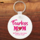 FEARLESS MOM Proverbs 31 keychain in hot pink typography. Stylish, modern inspirational message for a fearless mum or mum, based on Proverbs 31:25, which reads 'SHE LAUGHS AT THE FUTURE'. Hot pink typography with red heart image. This Proverbs 31 keychain would make an ideal gift for Mother's Day, birthday, Christmas, or would be great as favour giveaways at church, or as merchandise at women's conferences, etc. The Christian Bible verse is CUSTOMIZABLE, so you can add your name or create your own text. Choose from a wide selection of Christian inspirational keychain designs. Part of the FEARLESS Collection at Berean Designs.