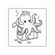 Cartoon illustration of an angry looking octopus on top of a treasure chest. Can be used for colouring.