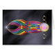 Sinuous glowing streams of red, yellow, green, blue, purple, and pink curve smoothly, crisscrossing from one great pearl down to the tip, accented at the end by a starburst.