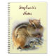 This notebook features a cute little chipmunk who is stuffing his cheeks as fast as he can on a snowy day. The text can be customised or deleted.