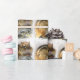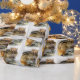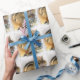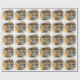 This adorable wrapping paper features a repeating pattern of a cute little chipmunk who is stuffing his cheeks as fast as he can on a snowy day. He is brown and gold with a black and white strip down his back.