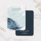 Stylish earring display holder with two printed hole markers is printed on an aquamarine blue brushed watercolor background. Subtle watercolored Feather accent . Hand painted look for a truly elegant display of your silver or stone earring masterpieces. Customise the font for the name of your business or use the elegant one here. Reverse shows your website and store address on deep Marine blue shade.