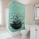 Gold and teal green feather of. Blackbirds, crows or Ravens shower curtain. Teal green colour combination of bids in flight. You can customise your colours and style to suit your bathroom curtain decor taste. Beautiful birds for the lovers of crows, ravens and black birds in fantasy.