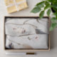 Beautiful twiggy branches adorned with feathers and flowers against a milky white background.