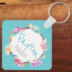 Watercolor native tribal boho feather and beads wreath personalized girls keychain. Personalize with your own name and name meaning. Currently reads Payton, Country warrior. Strong, determined & fortuitous. Pretty decorative art on a aqua background color which can be changed if required. Ideal for a free-spirited girl. © Original watercolor feather and bead art and design by Sarah Trett for www.mylittleeden.com and namesense on Zazzle.