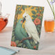 The Parrots fall in Love. A Cockatoo and a green Lory. In Foliage with blooming Flowers.