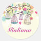 Round sticker. Part of the Feathered Friends Invitation Collection.