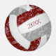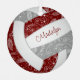 This cute volleyball themed ornament features the realistic image of a volleyball that has maroon, grey and white panels and a delicate doodle pattern of paislies, flowers and feathers in white overlying the maroon & grey panels - personalise with her name on the front, year on the back - by katz_d_zynes