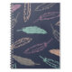 A chic journal featuring a colourful feather pattern.