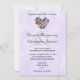A sweet and stylish wedding invitation. The background is a purple watercolor pattern. A watercolor design of feather in a heart shape at the top. Romantic and cute.