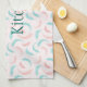 Lovely kitchen towels, wipe down your counter tops in style. Displaying feathers in pink and blue has a customisable template for your name in complementary green font. Order yours today!