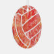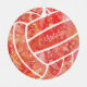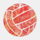 This sweet volleyball themed ornament has a red color theme with pink & gold accents and features the outline image of a simple volleyball - a delicate doodle pattern of paislies, flowers and feathers in white covers all but one of the volleyball's textured-look panels - personalize with her name on the front, year on the back - by katz_d_zynes