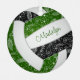 This cute volleyball themed ornament features the realistic image of a volleyball that has green, black and white panels and a delicate doodle pattern of paislies, flowers and feathers in white overlying the green and black panels - personalise with her name on the front, year on the back - by katz_d_zynes