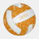 This cute volleyball themed ornament features the realistic image of a volleyball that has orange and white panels and a delicate doodle pattern of paislies, flowers and feathers in white overlying the orange panels - personalize with her name on the front, year on the back - by katz_d_zynes