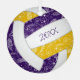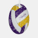 This cute volleyball themed ornament features the realistic image of a volleyball that has purple, gold and white panels and a delicate doodle pattern of paislies, flowers and feathers in white overlying the purple and gold panels - personalize with her name on the front, year on the back - by katz_d_zynes