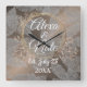 Feathers Rose Blush Floral Wreath Wedding Custom Square Wall Clock