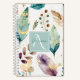 Feathery Floral Pattern Monogram Notebook