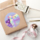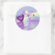 Stickers for February birthdays with my artwork of an amethyst heart, balloons and a rainbow.