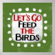 "Feed The Birds" is a cute text design in grey with black and red text, along with a white accent shape and white textured whimsical dots surrounding it.