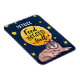 Background is colourful watercolor painted Illustration of a wolf lying in the grass in front of a huge yellow moon against a starry sky. Hand-lettering style typography Design appears in the centre of the moon with words, "Feed the Good Wolf" in black. Place above for you to add your child's name (in white)