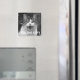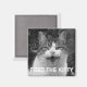 Grayscale photograph of a meowing tabby and white cat with text that reads, "Feed the Kitty." One of the "Crabby Cat" magnets that will get the message across with a his and yowl.