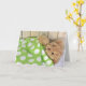 Fuzzy brown teddy bear under a green and white polka dot blanket for feel better soon.