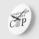 Great quality clock and very well made. Just what I was looking for to finish my hall off. Looked in loads of other websites and eventually found exactly what I was looking for at Zazzle. Designe and colour is perfect. I just love it. Bought the medium size and fits well for where I was placing it.