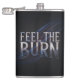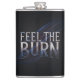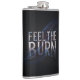 A powerful and visually striking graphic design featuring the phrase "Feel The Burn" in bold, elegant colours. The text is rendered in a sleek, modern font, with contrasting shades of deep blues, purples, and silvers. The overall composition is dynamic and eye-catching, with the text positioned prominently against a dark background. The design evokes a sense of intensity and excitement, reminiscent of the fiery energy of a burning flame.