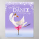 Cute watercolor art swan dancing poster print ideal for a new baby or baby shower gift. Soft watercolor art in shades of purple, pink and blue. Currently reads Feel the music dance and stretch your wings or your can personalize this poster with your own words. © Unique whimsical watercolor art painting and design by Sarah Trett. www.sarahtrett.com for www.mylittleeden.com