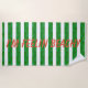 Series of stacked, planks in green, and light-green, stripes, blended with grey, upon a white, background-emblazoned, with the phrase, "I'm Feelin Beachy", in vibrant orange, block letters.